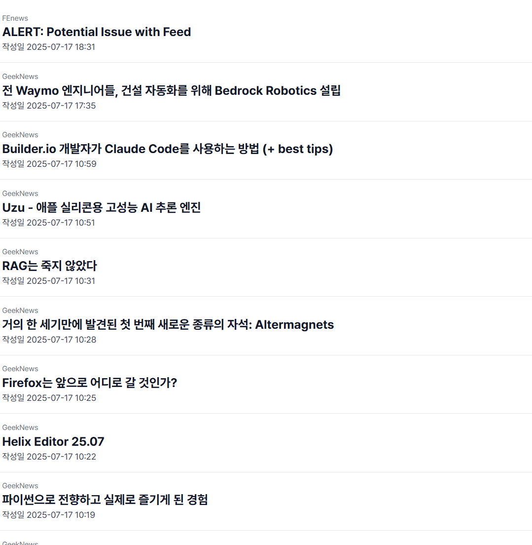 | FE Trend 개발기 #3 - RSS Parser 수난기 (with.GitHub Action) (0) | 2025.07.16 |