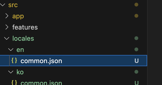 locales폴더에 설정 파일인 i18n.ts 추가, 리소스에는 방금 만든 json을 연결해 준다.